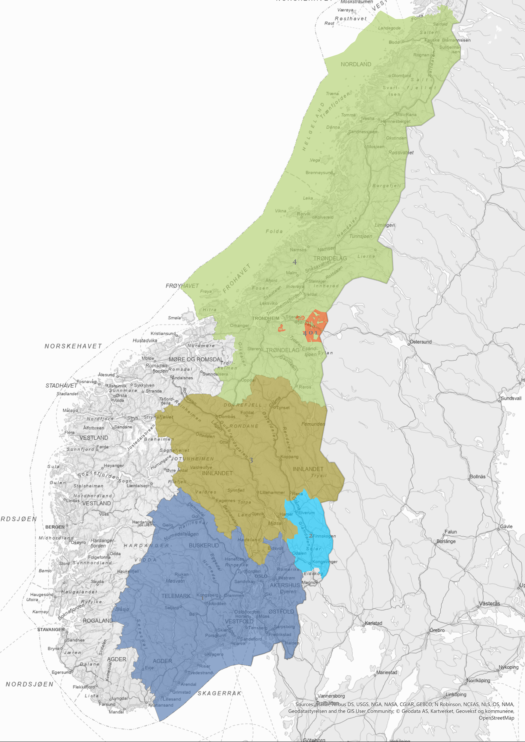 Her er de ulikeanbudsområdene